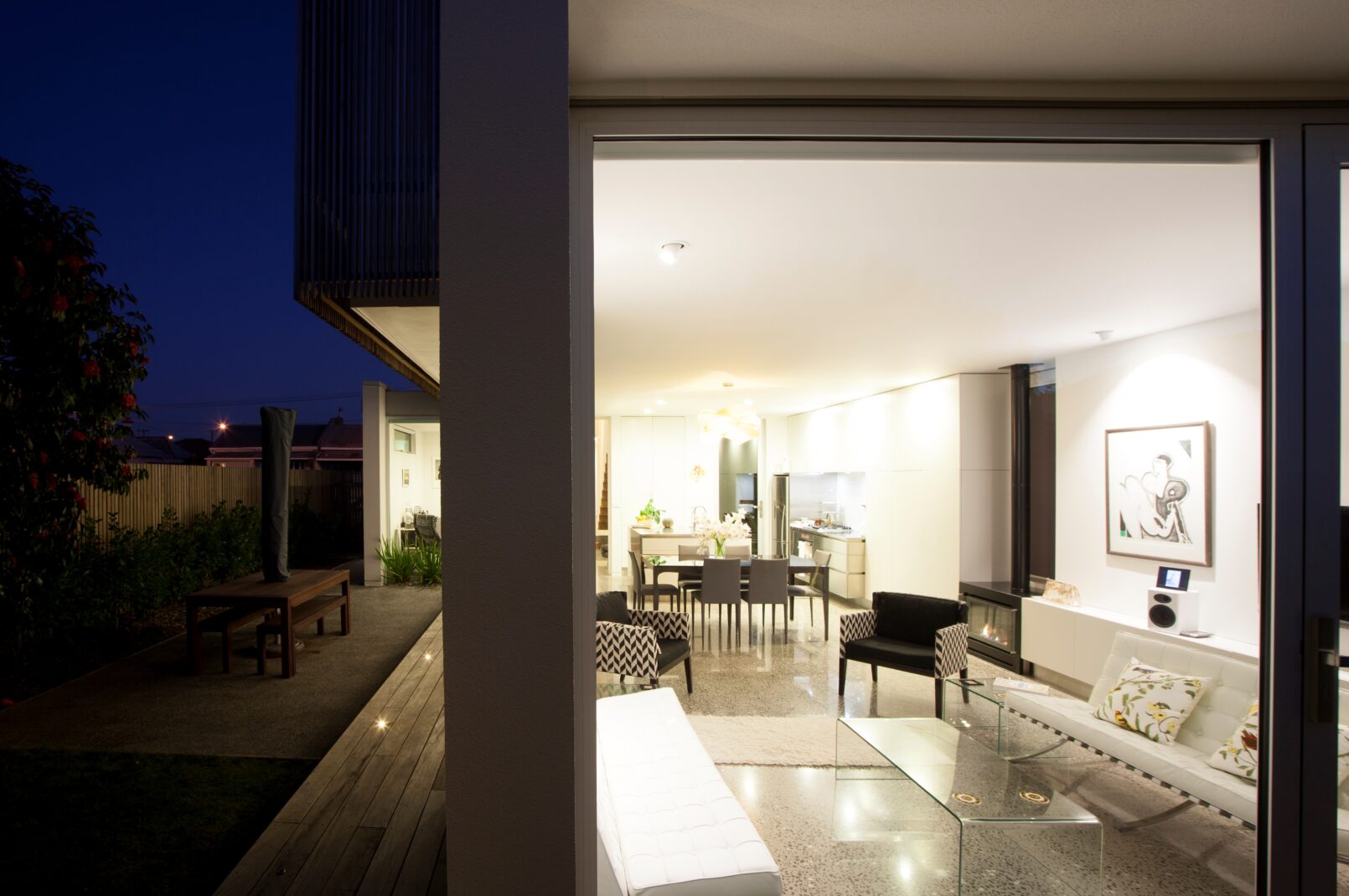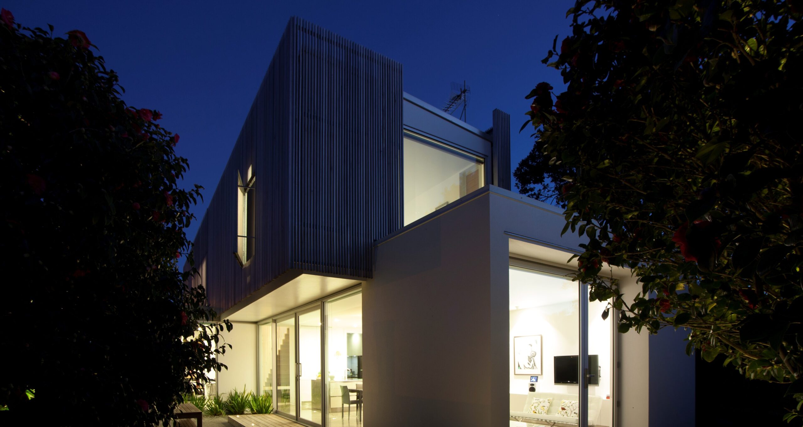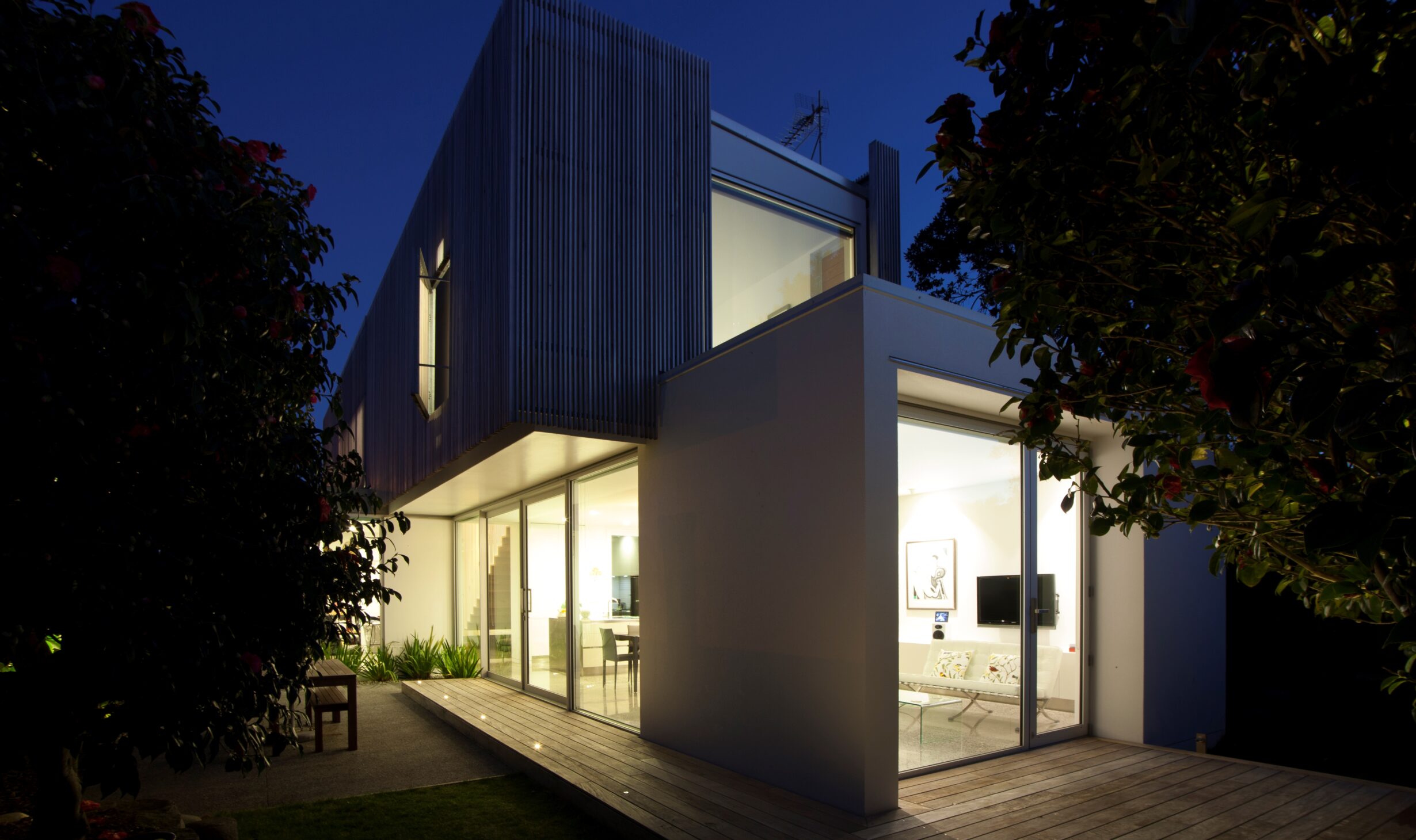 Set on a long, narrow urban site, this contemporary home creates a series of spaces tailored for different times of day, week, and year. A screened timber pod defines the street frontage, standing in bold contrast to the surrounding villas, bungalows, and brick houses of the city fringe.
